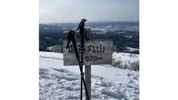 冬山に登るのは初めてです。スノーシューとポップソリをバックパックと共に背負い仲間5人と登りました。天気にも恵まれ少し歩いただけで汗が出てきます。塩丸はほぼ真っ直ぐに登るので600ちょっとの標高ですがなかなか登りごたえのある山です。
