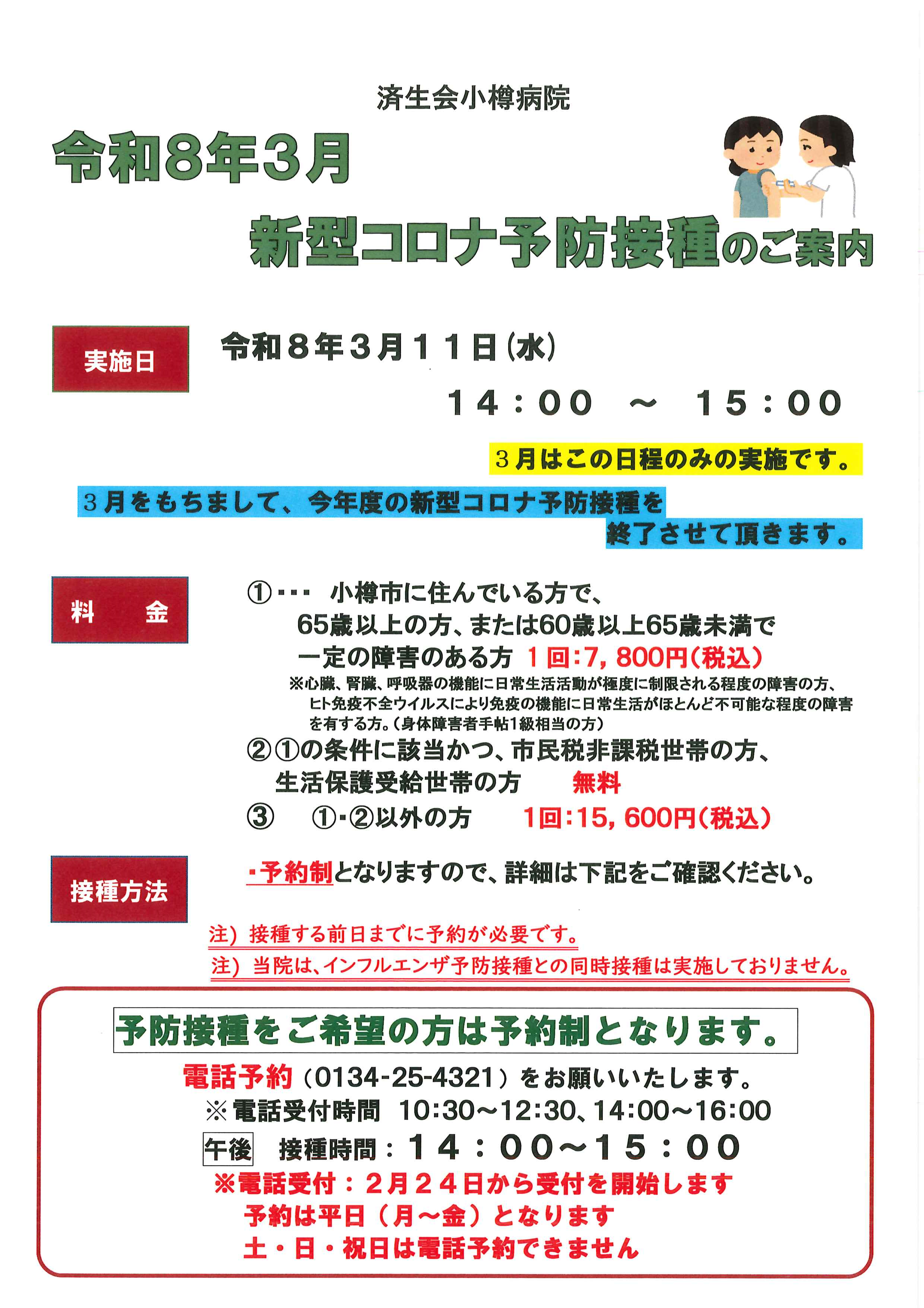 ※3月をもちまして、今年度の新型コロナ予防接種を終了させて頂きます